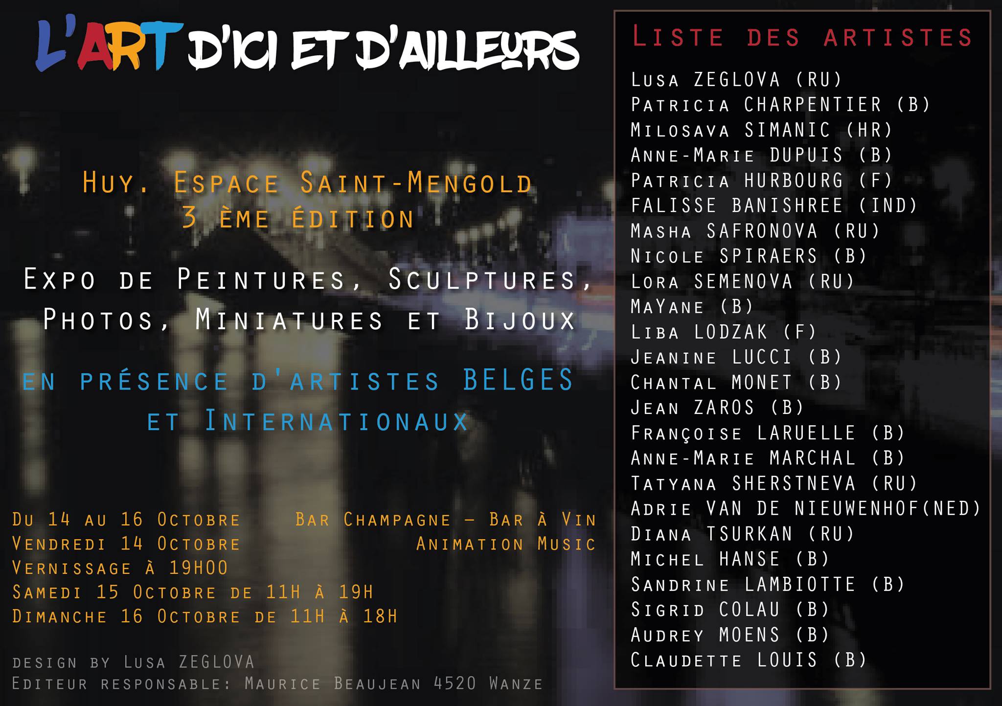 Стоимость билета: 12 Евро (при входе на концерт) - Tickets: 12 Euros at the door Контакты организаторов - Contacts for information : mauricejacot at gmail dot com / 067 21 42 49 or jean.pierre.hermant at skynet dot be / 0476 20 17 09