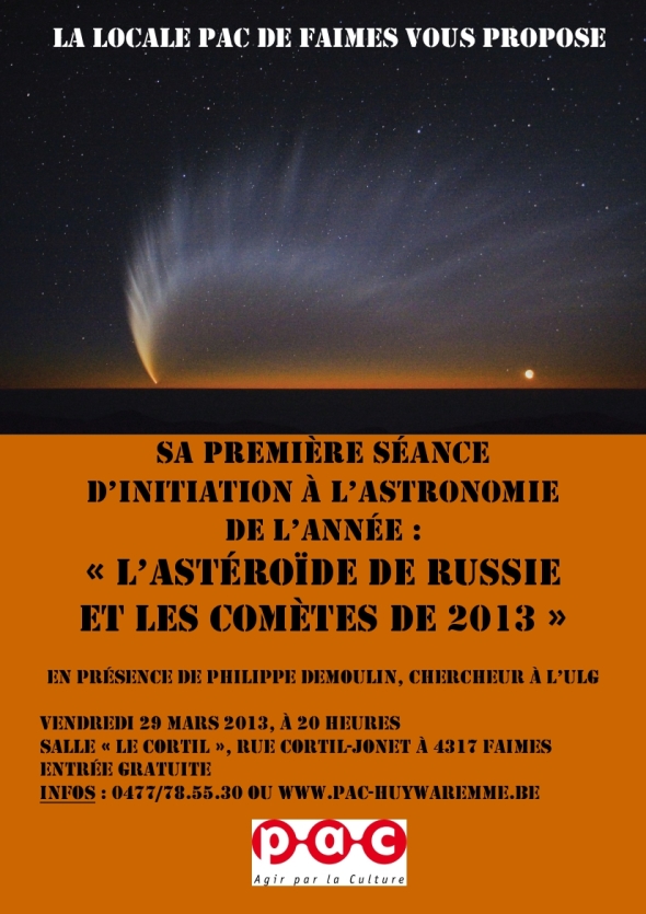 Mars 2013. Evénements à caractère culturel russe annoncésNos meilleurs souhaits de Joyeuses Pâques vous accompagnent à l'occasion de ce billet. Malgré la persistance hivernale, les événements à caractère culturel russe se sont bousculés au cours ce mois de mars dernier, pour se terminer par une conférence sur l'astéroïde de Russie et les comètes de 2013.Bien que plus clairsemés cette fois - le carême s'installe - voici les activités, principalement films et expositions, recensées pour le mois d'avril. En tant que prestation reliée à la résurrection du Christ notons le concert offert le 10 avril par la chorale « Роса и Нота » au malades soignés à l'Institut Pachéco. Nous remercions vivement les personnes nous signalant tant d'événements. Ces derniers sont immédiatement intégrés au calendrier et rendus accessibles via le site vava.be Bien évidemment vos annonces gagnent à disposer d'affiches et/ou d'illustrations attractives. Songez aussi à ceux de votre entourage n'ayant pas d'accès à la toile en leur communiquant la liste des prochains événements. Enfin n'oubliez pas de prendre connaissance des ouvrages reçus à la rédaction.