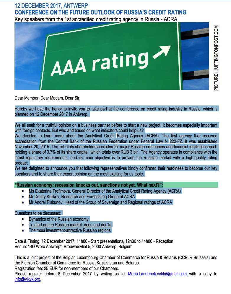 CCBLR - Chambre de Commerce pour la Russie et le Belarus (Biélorussie). December 2017, Brussels : Ambassador's cocktail in presence of H.E. Jean-Arthur Régibeau, Ambassador of the Kingdom of Belgium to Armenia, Belarus, Russia, Uzbekistan, and H.E. Michel Peetermans, Ambassador of Belgium in Astana (Kazakhstan).