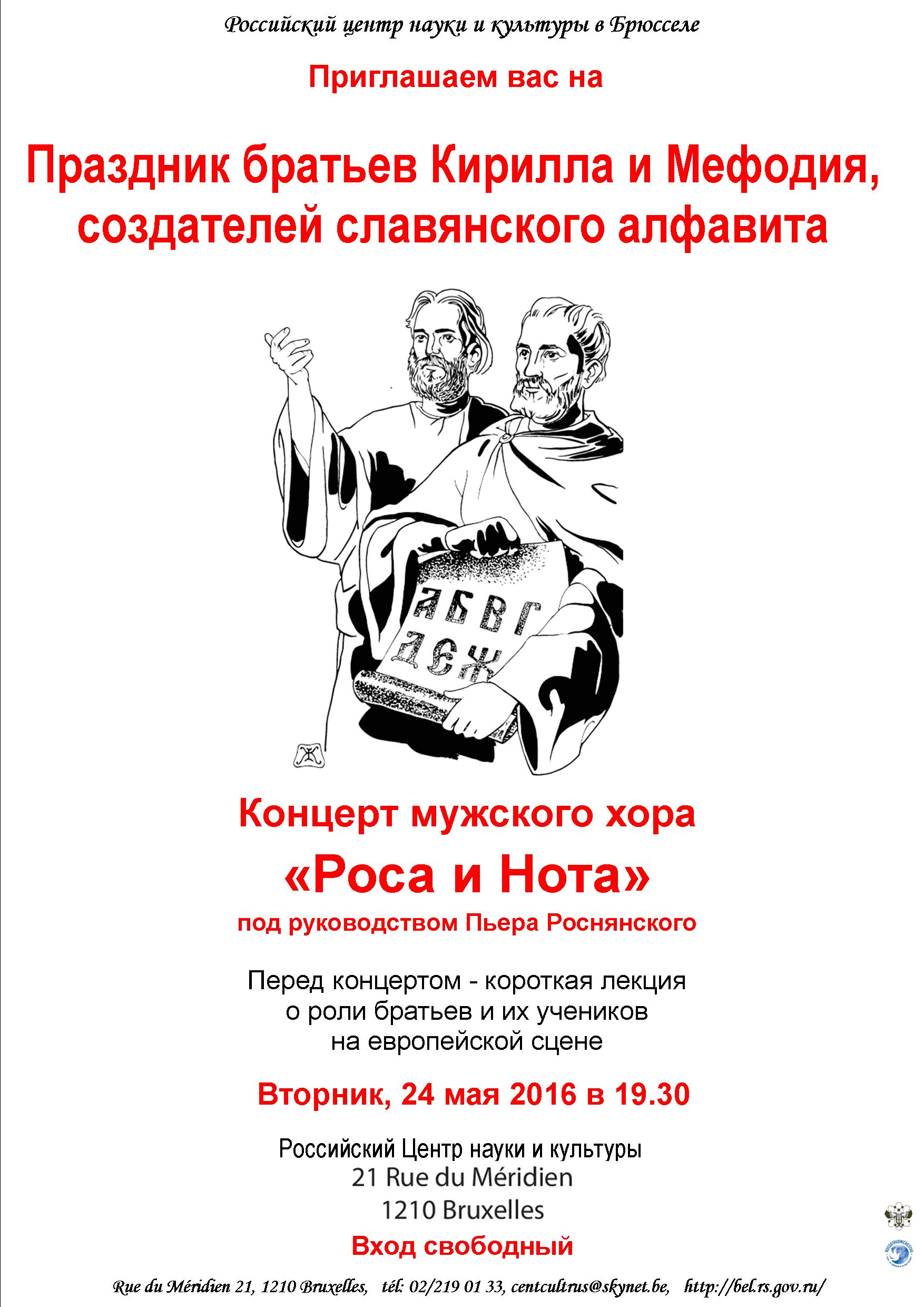 Fête des frères Cyrille et Méthode et Concert « Rossa i Nota » ce 24 mai 2016 au Centre culturel ;