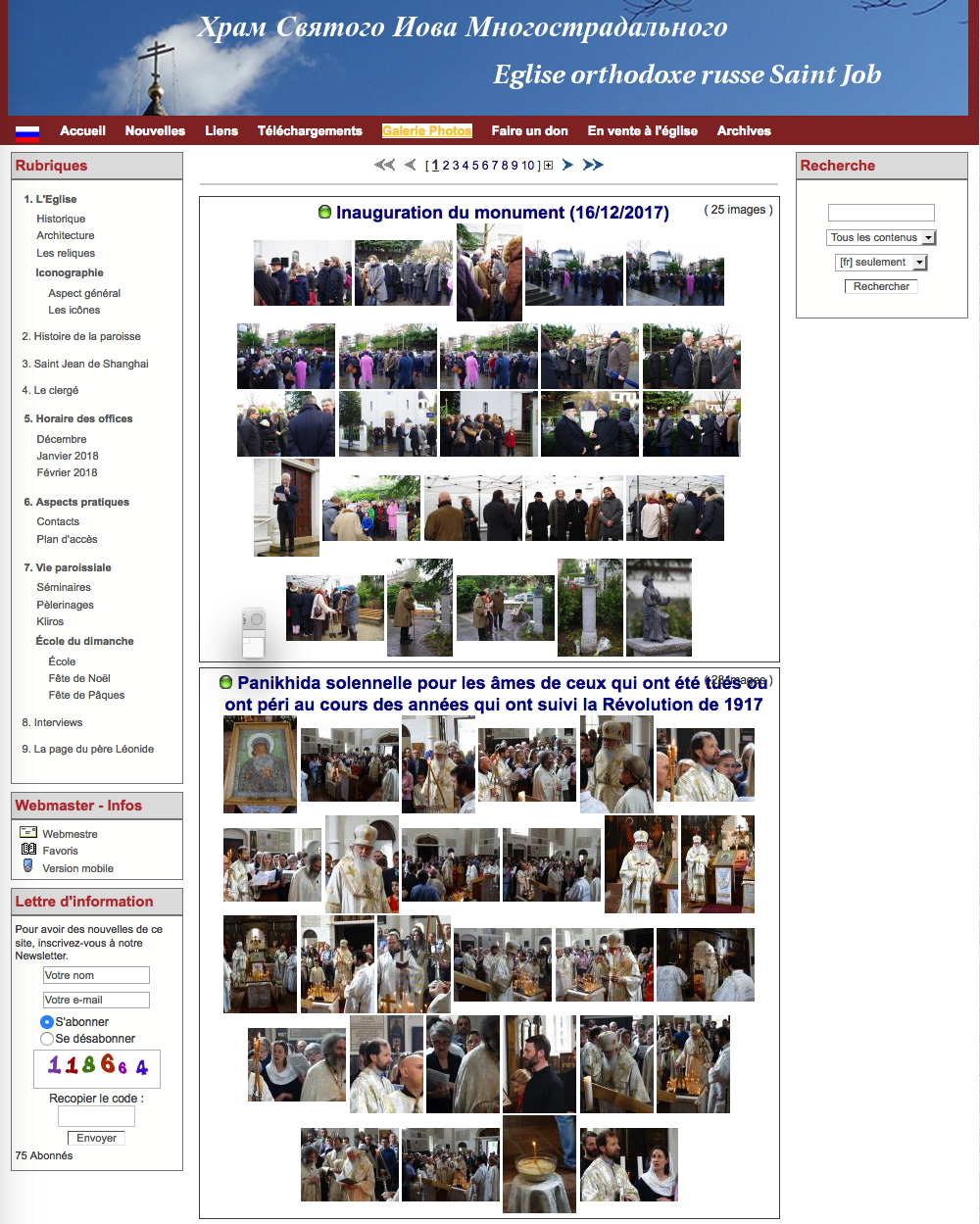 Monument exécuté par l'artiste Alexander Drutskoy Sokolinsky A l'occasion du centenaire de la révolution d'octobre 1917, le Conseil d'Administration de la Paroisse orthodoxe russe de Saint-Job (Eglise russe Hors-Frontières) inaugurera un monument érigé en mémoire de toutes les victimes de la révolution et du régime soviétique. Le Conseil d'Administration désire donner à cette cérémonie un caractère strictement séculier, les victimes dont on garde la mémoire appartenant à toutes les nationalités et à toutes les confessions.