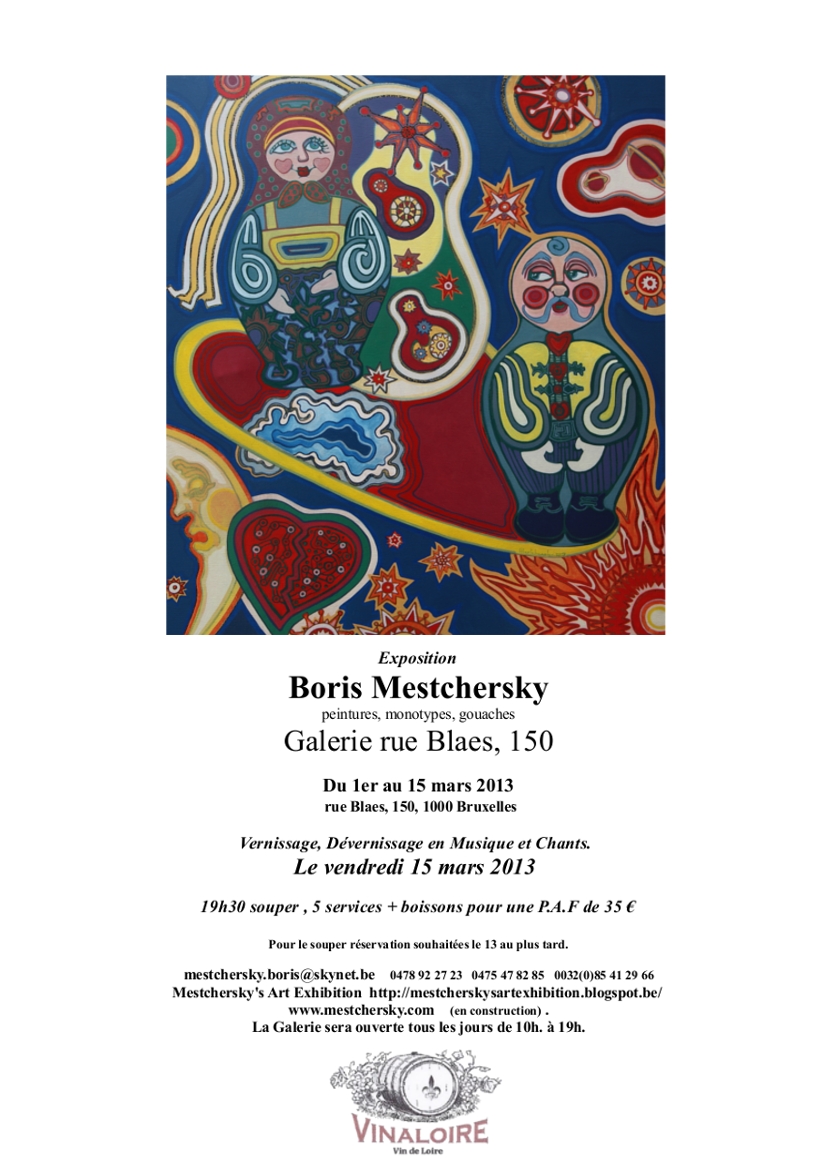 Galerie Espace Blaes 150, rue Blaes 150, 1000 Bruxelles Courriel : mestchersky.boris at skynet dot be Téléphone : 085 41 29 66 | Mobile : 0478 92 27 23