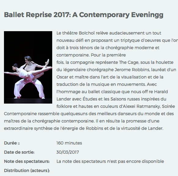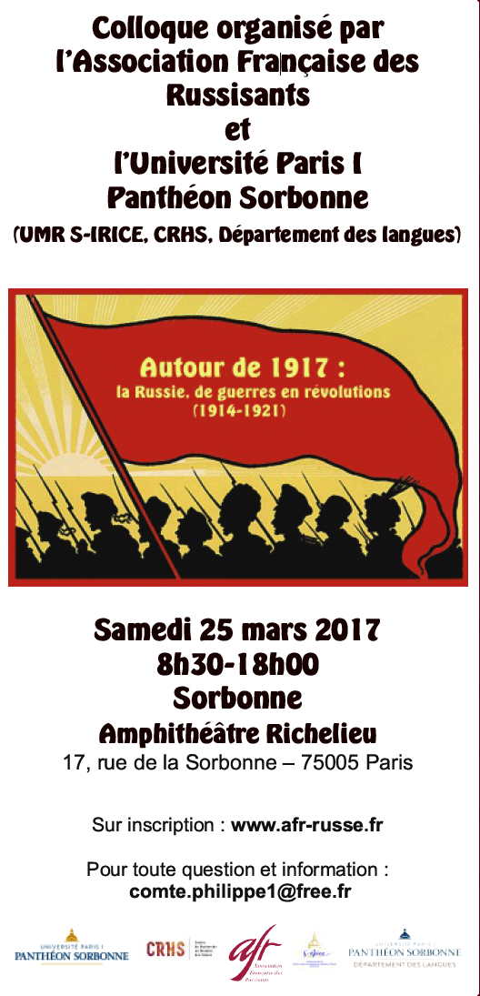 Avril 2017 => Calendrier d'événements à caractère culturel russe.