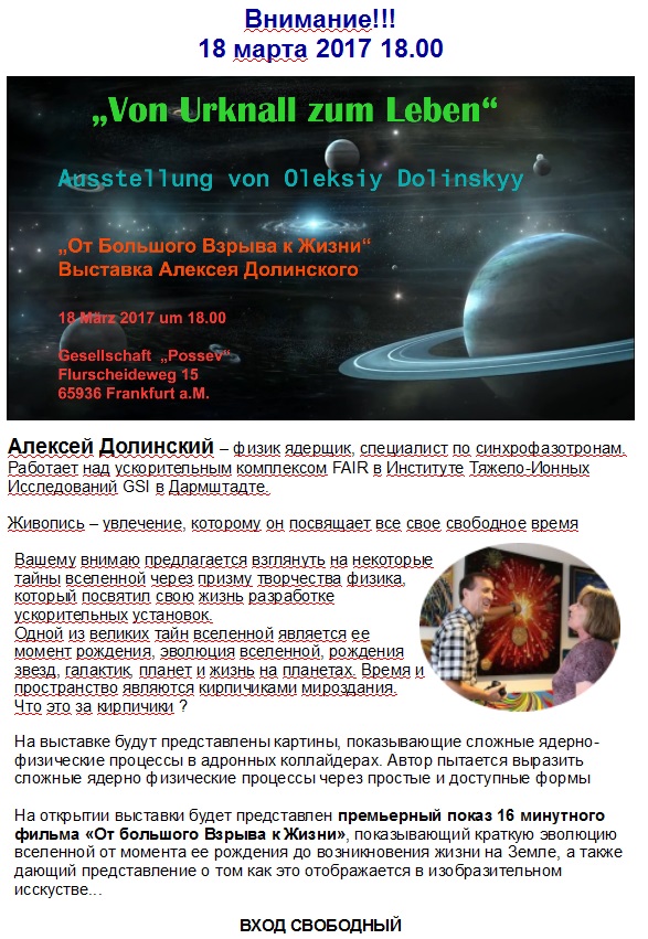 Стоимость участия : на усмотрение слушателя, благотворительный взнос. (Etwa 10 bis 30€)