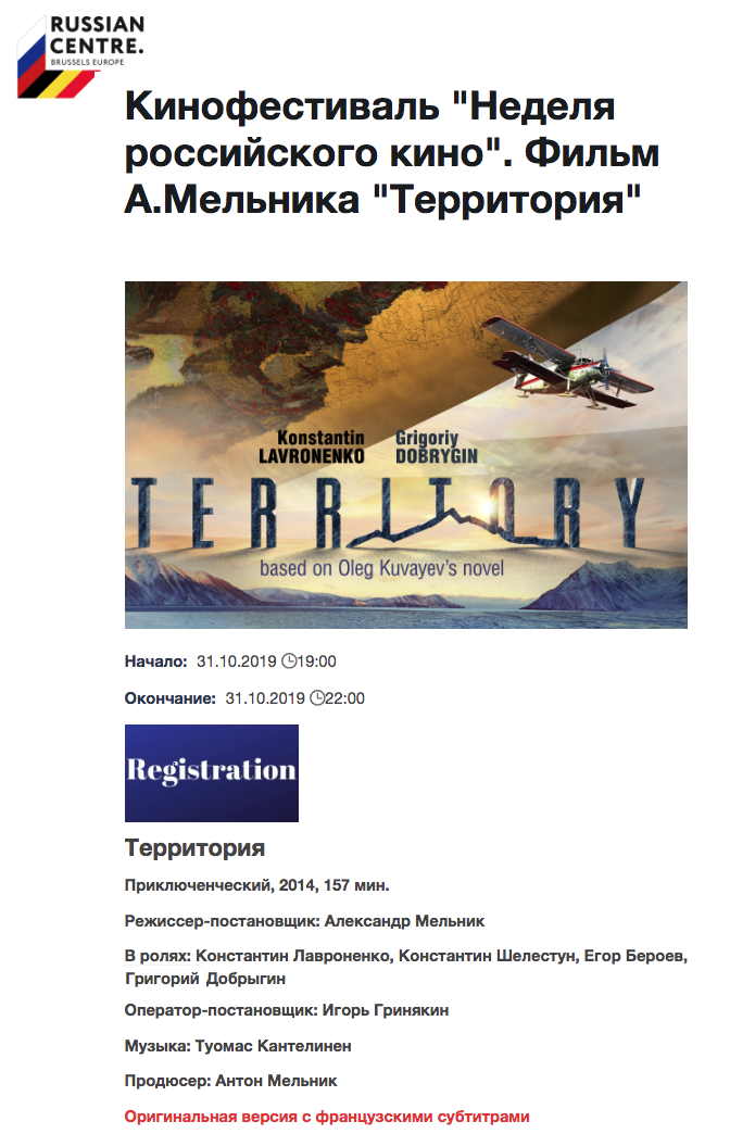 Сайт/Site : https://www.ruscentre.be/events/kinofestival-nedelja-rossiiskogo-kino-film-a-melnika-territorija.html