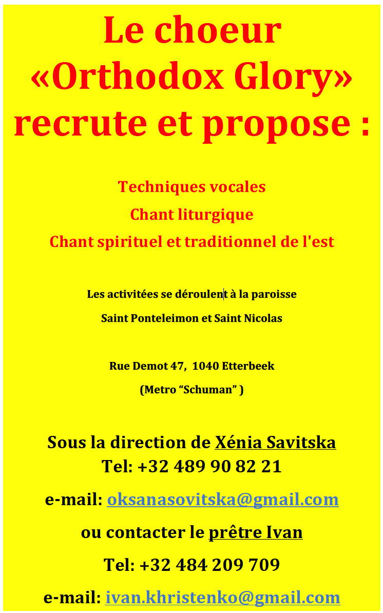 le choeur « Orthodox Glory » recrute et propose...