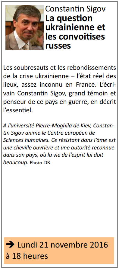 Novembre 2016 => Calendrier d'événements à caractère culturel russe.