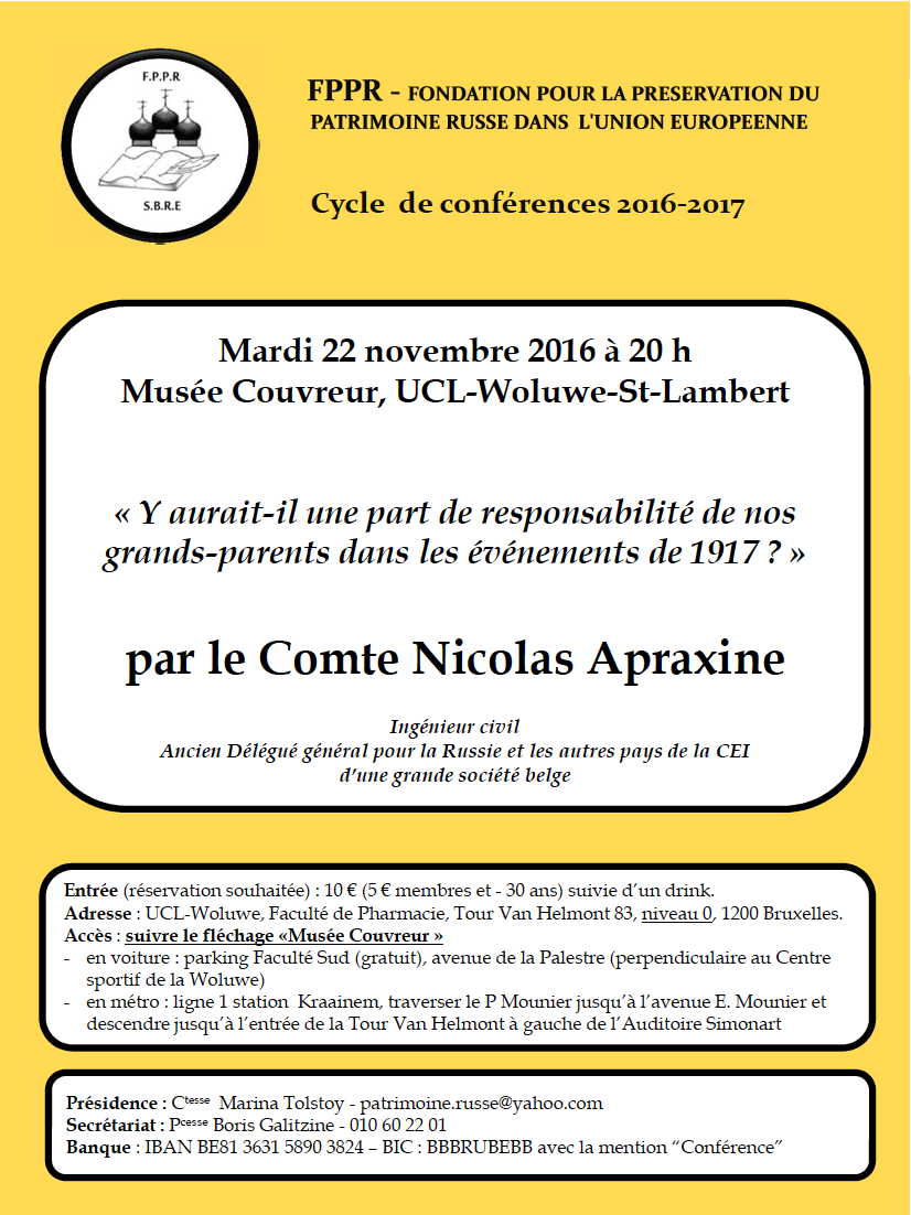 Novembre 2016 => Calendrier d'événements à caractère culturel russe.