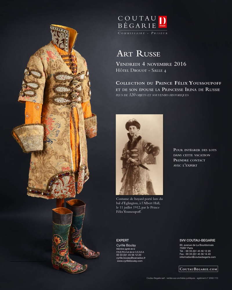 Clôture du catalogue fin septembre 2016 Pour ingérer des lots dans cette vacation prendre contact avec l'expert, Cordialement, Cyrille Boulay, Expert art russe et souvenirs historiques, Membre de la FNEPSA