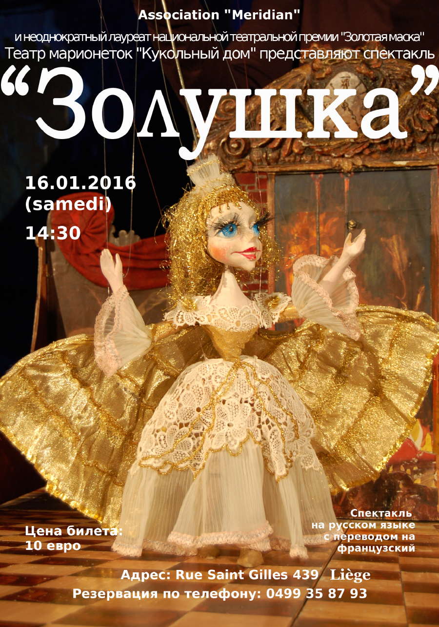| 1/1—8/1 => Exposition Mestchersky. Déconstruction de l’esthétique des formes. [1000 Bruxelles] 1/1—15/1 => Exposition de Noël. Monastère Sainte-Elisabeth de Minsk. [1160 Auderghem] 3/1 => Kinepolis. Самый лучший день. [1020 Laeken] 5/1—7/2 => Kirghizstan. Des chevaux et des hommes, par Vincent Robinot [en différents lieux] 9/1|16/1 => Спектакль « Золушка ». [2060 Antwerpen|4000 Liège] 10/1 => Kinepolis. Страна чудес. Новогодняя комедия. [1020 Laeken] 16/1 => Музыкальные Метаморфозы. Muzikale metamorphoses. [1140 Evere] 19/1|24/1 => Casse-Noisette. [4000 Liège|1190 Forest] 21/1|24/1 => Démon (Opéra en concert). [1000 Bruxelles] 22 => La Traviata. Opéra National de Russie. [1190 Forest] 23 => Традиционный Новогодний вечер 2016! [2870 Ruisbroek-Puurs] 23/1—31/1 => Chagall, Poliakoff et Gontcharova à Bruxelles en 2016. [1000 Bruxelles] 23-24/1 => Festival. Ukraine on Film. A Way to Freedom. [1000 Bruxelles] 25/1 => Traditional New Year Reception of the CCBLR. [1000 Bruxelles] 31/1 => 3rd concert of the 2nd International Music Festival « Triomphe de l'Art » with Alexey Sayapin. [1210 Saint-Josse-ten-Noode] Bibliographie :Militaria Belgica => Résistance anti-allemande des immigrés russes blancs, par Nicolas Bieliavsky Путеводители => В центре Брюсселя. Прогулки по Антверпену, par Vladimir Ronin Dossier => Onrust in Oekraïne, par DeWereldMorgen.be