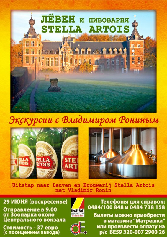 Uitstap naar Leuven en brouwerij Stella Artois met Vladimir Ronin. Экскурсии с Владимиром Ронином. В программе дня :