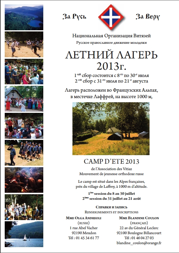 Национальная Организация Витязей. Русское православное движение молодежи. Mouvement de jeunesse orthodoxe russe. Лагерь расположен во Французских Альпах, в местечке Лаффрей, на высоте 1000 м.