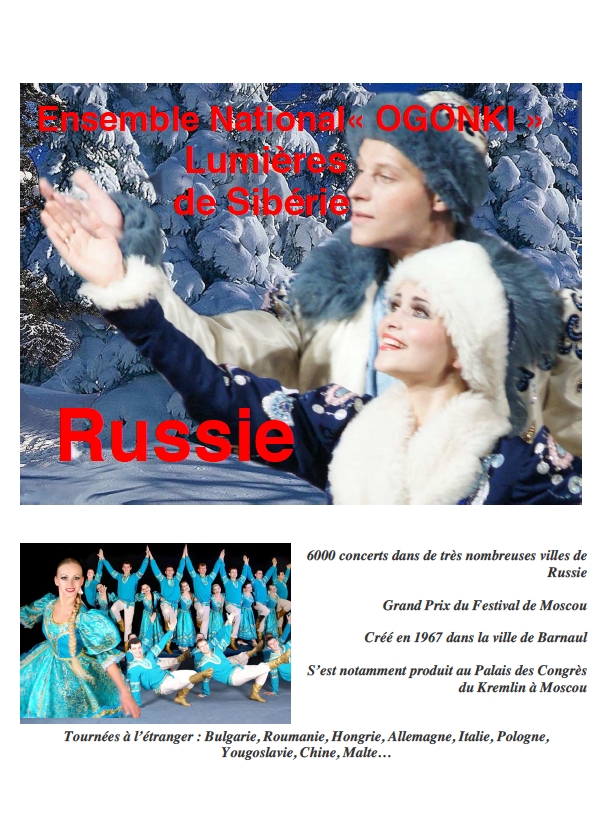 IIIème Festival « Rendez-vous avec la Russie » dédié au 160 ans d'histoire diplomatique entre la Russie et la Belgique. C’est avec beaucoup de fierté que nous vous annonçons la tenue d’un événement important. Cette année, dans le cadre du 160e anniversaire des relations diplomatiques entre la Russie et la Belgique, nous avons l’honneur de vous inviter à un ensemble de festivités pour marquer l’occasion. Nous avons pris soin de mettre les petits plats dans les grands pour le bonheur des petits et des plus grands. Ainsi, le 1er juin 2013 vous aurez la possibilité d’assister à un spectacle de l'Ensemble OGONKI de la Ville de Barnaul. 90 minutes de spectacle exceptionnel qui ne manquera pas de vous soulever le cœur et de créer un véritable enchantement, venue de l’extrême Sibérie.