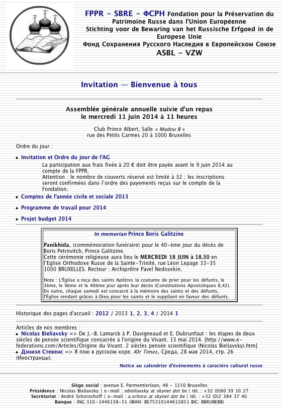 Relevons le pélerinage ce dimanche 8 juin 2014 à Mourmelon, sur l'assemblée générale de la FFFP du 11 juin 2014, ainsi que sur conférence du 20 juin 2014 de Marie-Pierre Rey intitulée 1814 : un Tsar à Paris.