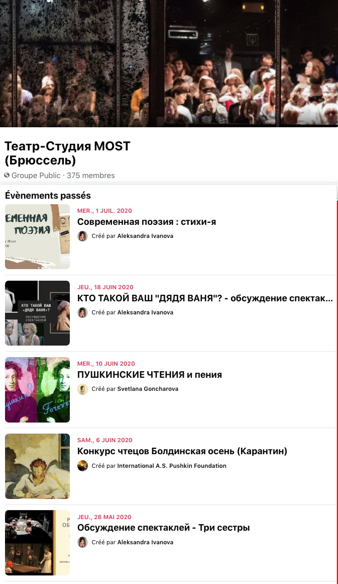 October 2014 : Calendrier d'événements relatifs à la culture russe.Voici le lien vers la liste des 53 événements culturels déjà enregistrés pour ce mois de novembre 2014. Notons que décembre rassemble déjà 21 annonces et l'année 2015 en compte 31. Impossible donc de tout citer dans ce texte! Ne nous en tenez pas rigueur. Alors que la troupe Koukouchechka de Bobrouisk poursuit sa tournée, Julietta propose déjà une petite soirée en chansons ce 7 novembre au Sans Interdit. Nous avons été ravis d'assister au tout premier concert donné par sa toute nouvelle asbl Triomphe de l'Art et dont Radio-Rubel a assuré le reportage. Le lendemain 8 novembre « Parfum d’Ambre » nous invite à son double événement qui met l'âme slave à l'honneur. Nous aimons annoncer les concerts parisiens de Natacha ainsi bientôt son Récital Fusion puis Sainte-Cécile. Nos amis liégeois nous offrent une soirée russe au musée du Fort à Boncelles, tandis que Halinka nous revient à Bruxelles avec son expo « Détails pierre - bronze ». Enfin, ne rater sous aucun prétexte le 28 novembre le prestigieux Gala « Patrimoine Russe » au Château du Lac à Genval ainsi que le 25 novembre la petite prestation de notre chorale « Rossa i Nota » en l'Eglise Sainte-Alix de Woluwé-Saint-Pierre. | |