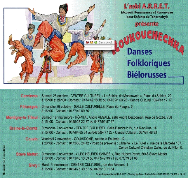 Tarif : 5 € Renseignements par tél : 043 38 06 66 ou courriel ; asbl.latourdair at skynet dot be