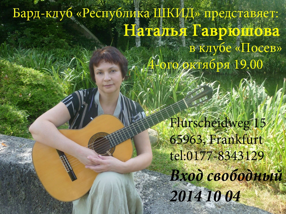 Дорогие Друзья! Спешно сообщаем Вам, что не присутствовавшие на концерте Жемала Маласидзе в помещении Посева 27 сентября, могут послушать прекрасный концерт классической гитары Произведения И. С.Баха, М. Джулиани, Х.Турины, Н. Кошкина, А. Пиаццоллы и др. В приходском зале при храме свят. Николая по адресу: Gitarren-Konzert mit Jemal Malasidze Werke von J. S. Bach, M. Giuliani, J. Turina, N .Koshkin, A. Piazzolla u.a.