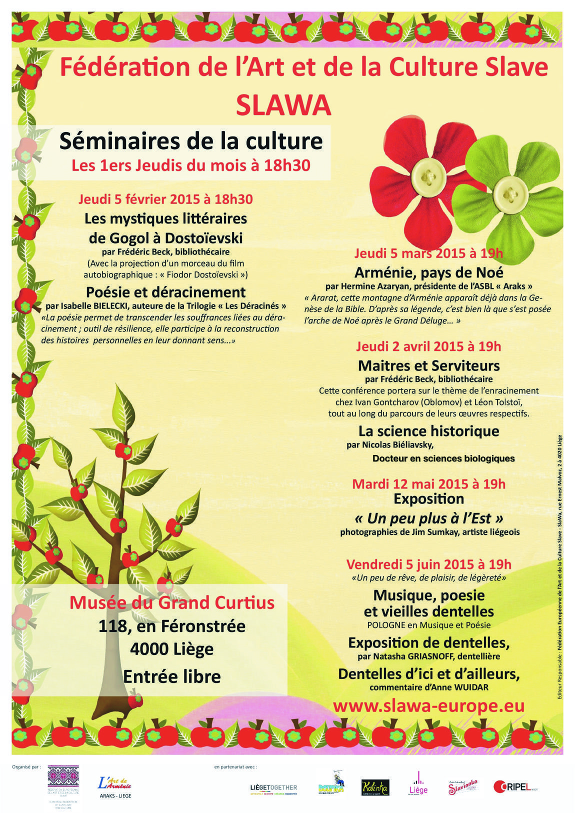 R.S.V.P. avant ce vendredi 30 janvier 2015. Téléphones : +32 (0)4 84 94 26 07 / +32 (0)4 97 61 28 65 / +7 98 59 23 50 31 (Yvan Kriloff) / Courriel : yvan.kriloff at gmail dot com