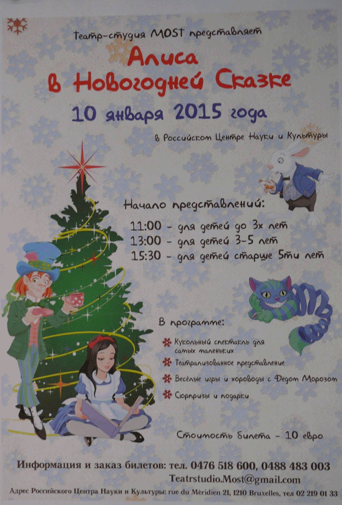 Note : la 1ère soirée privée du Nouvel An russe du 12 janvier affiche complet, mais le samedi 17 janvier il resterait des places pour le 3e concert de la « Malanka », vieux jour de l’an ukrainien à Floreffe (Namur), le IV Русский Благотворительный Бал. Зимняя Сказка à Luxembourg (Grand-Duché), le jour de Vieux Nouvel An à Boncelles et la Коляда – Soirée de chants de Noël à Liège (Rocourt).