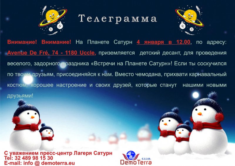 Invitation. Boncelles. Tour d|Air, Kalinka et Slavianka Art. Le jour de Vieux Nouvel An. 2015-01-17