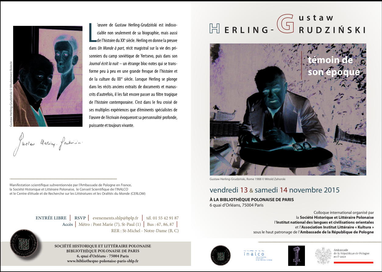 • 13-14/11 => Gustaw Herling-Grudziński, témoin de son époque [F-75004 Paris]