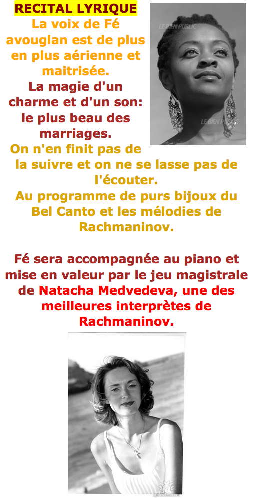 • 16 avril à 18h- Concert « La Femme, L’Amour et l’Opéra », par Victoria Adams (Oksana Goncharuk). Sur réservation : iPAF 10€ (8€ membres, abonnés) ;
