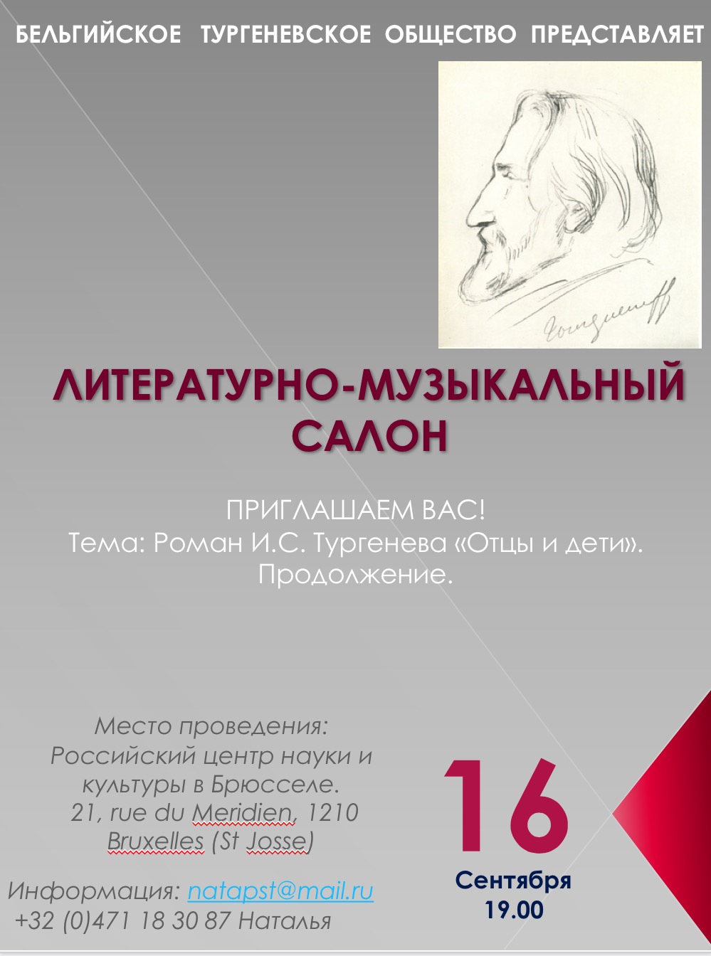 Centre culturel et scientifique de la Russie à Bruxelles, rue du Méridien 21, 1210 Bruxelles (Saint-Josse-ten-Noode)