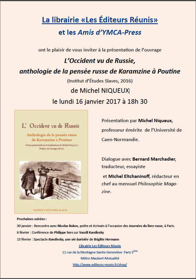 Janvier 2017 => Calendrier d'événements à caractère culturel russe.