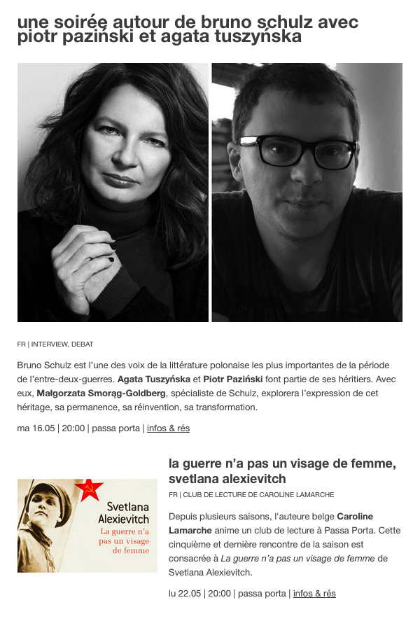 Soirée autour de Bruno Schulz avec Piotr Paziński et Agata Tuszyńska. 2017-05-16