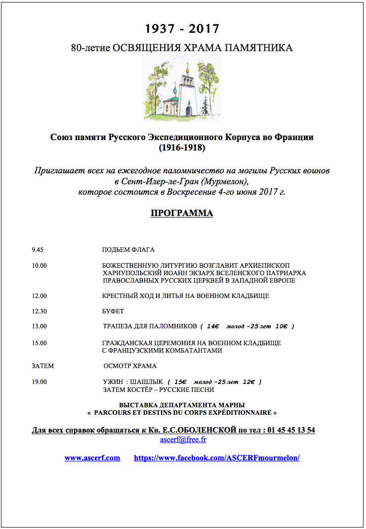 Juin 2017 => Calendrier d'événements à caractère culturel russe.
