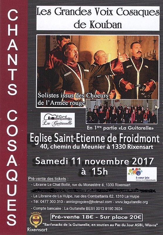 A l'occasion du 6ème anniversaire du Gala « Patrimoine russe » et du tri-centenaire du passage de Pierre le Grand dans les villes belges, La Fondation Internationale A. S Pouchkine, sous le haut patronage de son Excellence Monsieur A. A. Tokovinin, Ambassadeur de Russie au Royaume de Belgique, avons l'honneur d'accueillir à notre soirée animée par l'ensemble polyphonique russe « Kouban ». | |