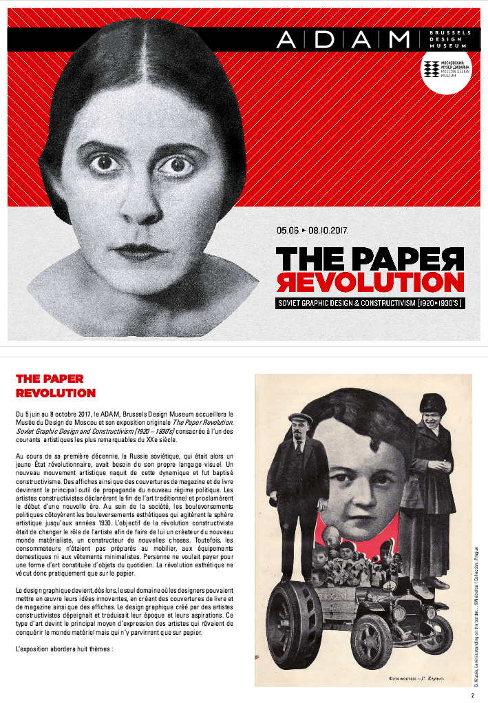 A l’occasion du 100ième anniversaire de la Révolution russe, le Art & Design Atomium Museum (ADAM) et le Moscow Design Museum proposeront une exposition spéciale, The Paper Revolution 1920-1930's.