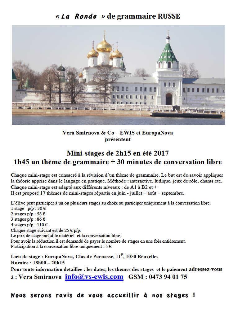 Сайт/Site : http://www.vava.be/Files/RC Prospectus. Inscriptions cours de langue russe. Année académique 2017-2018. 2017-08-28.docx