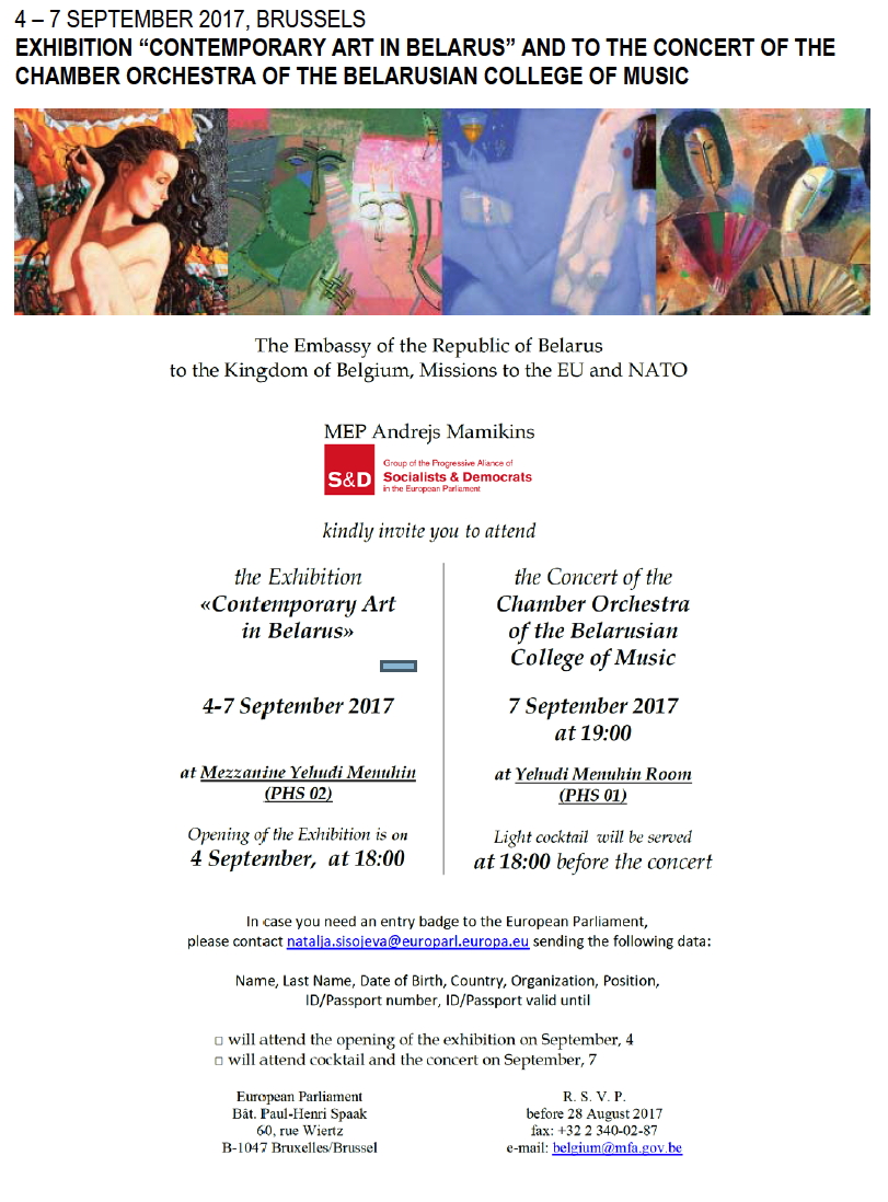 Exhibition « Contemporary Art in Belarus » and to the Concert of the « Chamber Orchestra of the Belarusian College of Music ». |