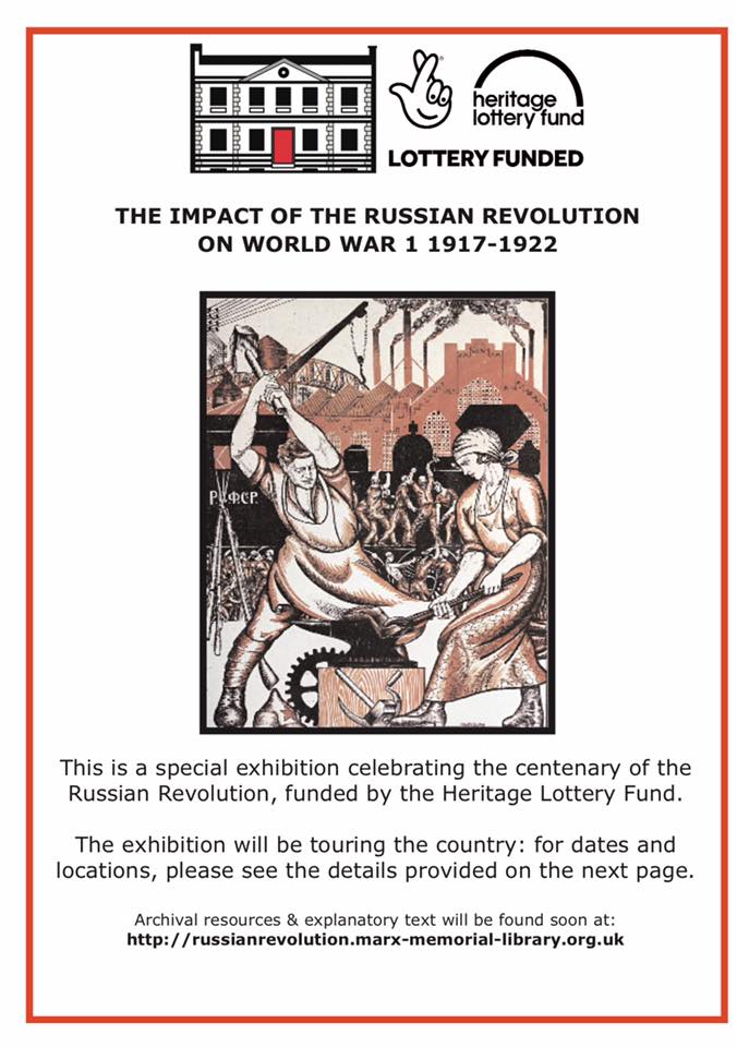 BDIC - Bibliothèque de documentation internationale contemporaine. La première partie de l’exposition, Guerre et révolution, acteurs et territoires, offre un parcours chronologique destiné à éclairer la richesse des enjeux par des tracts-affiches, photographies, revues satiriques, évoquant des destins collectifs ou singuliers qui portent les uns au pouvoir et entraînent les autres vers l’exil. De la révolution de Février à celle d’Octobre, les événements s’enchaînent à un rythme particulièrement rapide. L’exposition plonge le visiteur au coeur des événements et explique le contexte de la Grande Guerre avec la dislocation de l’armée russe et la naissance de l’Armée rouge. Une troisième section souligneles revendications sociales et nationales nées de la révolution de Février, augurant une refondation de la Russie comme nouvelle union des peuples. La seconde partie, Témoignage, documentation, propagande, commémorations, retrace la construction de l’événement à l’aube du XXème siècle qui sera celui des médias et des opinions. Des témoins français collectent des matériaux pour la toute jeune Bibliothèque-musée de la Guerre, parlent de la révolution, parfois s’engagent à ses côtés. Cette seconde partie s’intéresse à la manière dont les Français réagissent aux révolutions ayant lieu en 1917. Le baron de Baye, chargé d’une collecte documentaire à l’origine des collections uniques de la BDIC, est mis à l’honneur. La fin du parcours s’attache à expliquer comment le mythe de la révolution d’Octobre s’est substitué à la réalité pour construire un nouvel imaginaire offrant ainsi une vision révolutionnaire du monde et une promesse d’un avenir meilleur. Commissaires de l’exposition : Carole Ajam (BDIC), Alain Blum (INED - EHESS), Sophie Coeuré (Université Paris Diderot - Paris 7), Sabine Dullin (Sciences Po) Conseillers scientifiques : Thomas Chopard (CERCEC), Jean-François Fayet (Université de Fribourg), Emilia Koustova (Université de Strasbourg), Etienne Peyrat (Sciences Po), Alexandre Sumpf (Université de Strasbourg) Autour de l’exposition :