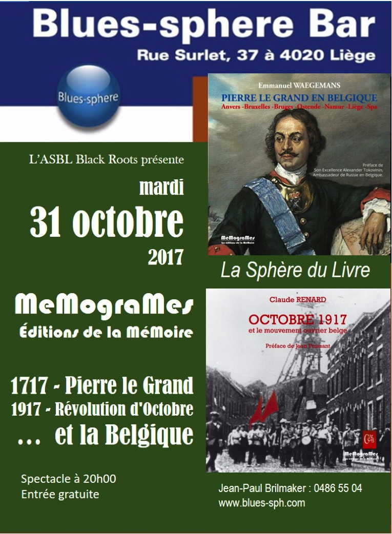| Calendrier vava.be octobre 2017 | Liste des intitulés | Album des affiches/illustrations | Descriptifs détaillés Événements d'octobre 2017 :1 => Cinematek - Classics & anthologies Rusland 2017 (Bruxelles) 1 => Concert - Julie Jaroszewski (Bruxelles) 1 => Spectacle - Si Pouchkine vous était chanté (Fontainebleau) 1 => Visite - Национальный ботанический сад (Meise) 1 => Excursion - с Владимиром Рониным и не только по Остенд (Oostende) 2,16 => Conversation - Table russe (Mons) 4 => Visite - Художественный музей Искусство и общество. (Bruxelles) 5 => Conférence - La Russie, agresseuse, agressée ou partenaire ? (Woluwé-Saint-Lambert) 6 => Concert - Anna Vinnitskaya (Nivelles) 6-30 => Exposition - 1917 : la fin des tramways belges en Russie (Liège) 7- => Exposition - Dutch Masters from the Hermitage. Treasures of the Tsars (Amsterdam) 7 => Excursion - по Генту (Gent) 8 => Présentation - 100 jaar Oktoberrevolutie. Tien dagen die de wereld deden wankelen. Reds (Borgerhout) 8 => Débat - De la Révolution Russe aux goulags (Blois) 11 => Conférence - 2017 : le spectre de la révolution qui hante la Russie d’aujourd’hui (Bruxelles) 12 => Conférence - L'art musical dans le feu de la Révolution russe (Aix-en-Provence) 12 Conférence - Russie : grand retour d’une grande puissance ? (Woluwé-Saint-Lambert) 13 => Exposition - L'art d'ici et d'ailleurs (Huy) 13-14 => Musique - ballet russe et Concerto de Grieg (Roeselare/Gent) 14 => Concert - Krachtige verhalen (Gent) 14-15, 21-22 => Exposé - La Russie ancienne (Stockel) 14-15 => Théâtre - Majakovski/Oktober (Antwerpen) 14 => Marionnettes - Курочка ряба (Liège) 14 => Excursion в Ипр и Кортрейк (Kortrijk/Ieper) 18- => Exposition - Et 1017 devient Révolution... (Paris) 19-21 => Colloque - Les trajectoires d’Octobre 1917 (Paris) 21-22 => Commémoration - Centenaire de la Révolution Russe 1917 (Schaerbeek) 22 => Ballet Live 2017 : Le Corsaire (Kinepolis) 22-26 => Conférence : Лидерство в образовании (Etterbeek) 23 => Conférence FPPR - Mes derniers jours à Tsarskoïe Selo (1917). Souvenirs de mon grand-père (Woluwé-Saint-Lambert) 26 => Concert - Une ballade finlandaise (Paris) 26 => Extraits commentés - Semion Kotko de Prokoviev (Saint-Josse-ten-Noode) 27 => Forum CCBLR - Belarus Invest in tomorrow (Luxembourg) 31- => Exposition - Peintures Révolution Russe (Genève) Notes : Revue FPPR - Fondation Préservation Patrimoine Russe, n°6 (juin 2017), 82 pages ; Gala « Patrimoine Russe » le 17 novembre 2017 dès 19 heures au Château du Lac à Genval. Attention : inscription requise avant la fin du mois pour bénéficier du prix attractif ; Événements => déjà 29 et 15 activités respectivement postées en novembre et décembre 2017. |