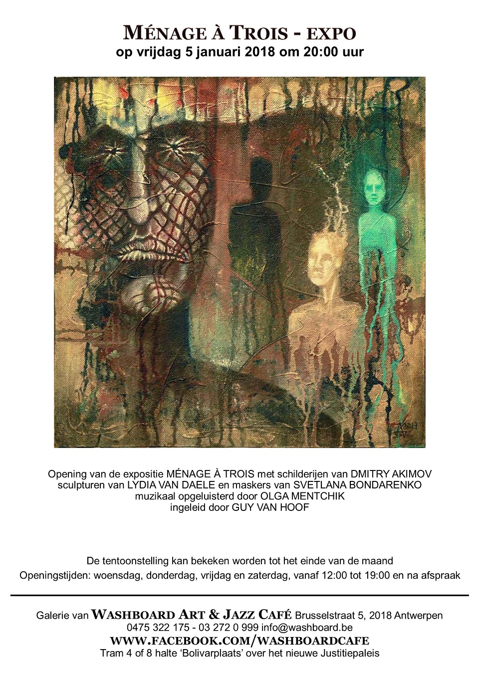 du vendredi 5 janvier 2018 au mercredi 31 janvier 2018 Vernissage : om 20:00 uur Openingstijden: woensdag, donderdag, vrijdag en zaterdag, vanaf 12:00 tot 19:00 en na afspraak