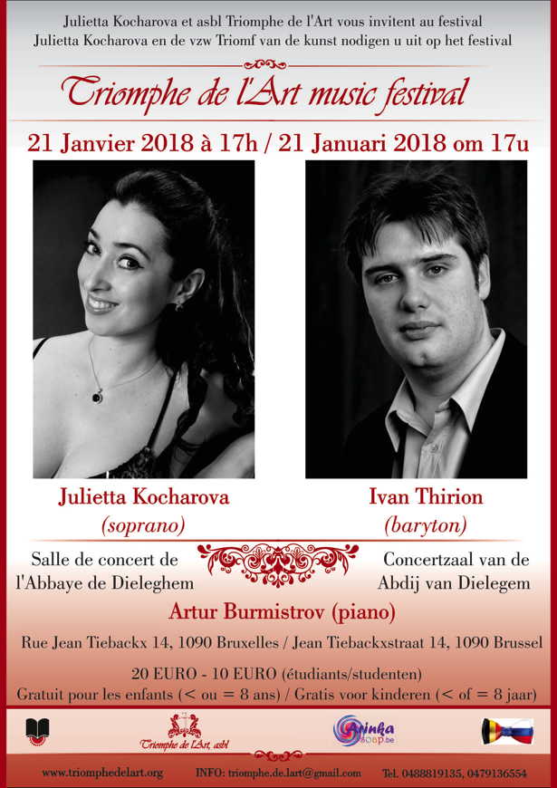 Evénements de janvier 2018 : 5-31 => Ménage à trois - Expo (Antwerpen) 6 => Traditionnel Nouvel An russe (Luxembourg) 7 => Carmina Burana (Gent, Forest, Antwerpen) 7,13,20,26 => Activités ARINA (Bruxelles/Antwerpen) 11/1-11/2 => Exploration du Monde - Russie (Différents lieux en Belgique) 13 => Рождество и Старый Новый Год! (Francfort) 17-21 => Festival films Géorgie, Ukraine, Arménie, Azerbaïdjan, Moldavie et Biélorussie (Bruxelles) 20/1-19/6 => Célébrations bicentenaire Ivan Tourguéniev (Bougival) 21 => Ballet Romeo and Juliet (Kinepolis) 21 => Concert Ivan Thirion / Julietta Kocharova (Jette) 24/1-21/5 => Soviet Design. Red Wealth (Laken) 27 => Belarus 4'33. Sun City of Dream Point Zero (Bruxelles) Suivis : Colloque 1917-2017 : Espoirs, utopies et héritages de la Révolution russe (Saint-Gilles) Inauguration statue à la mémoire des victimes de la révolution et du régime soviétique (Uccle)