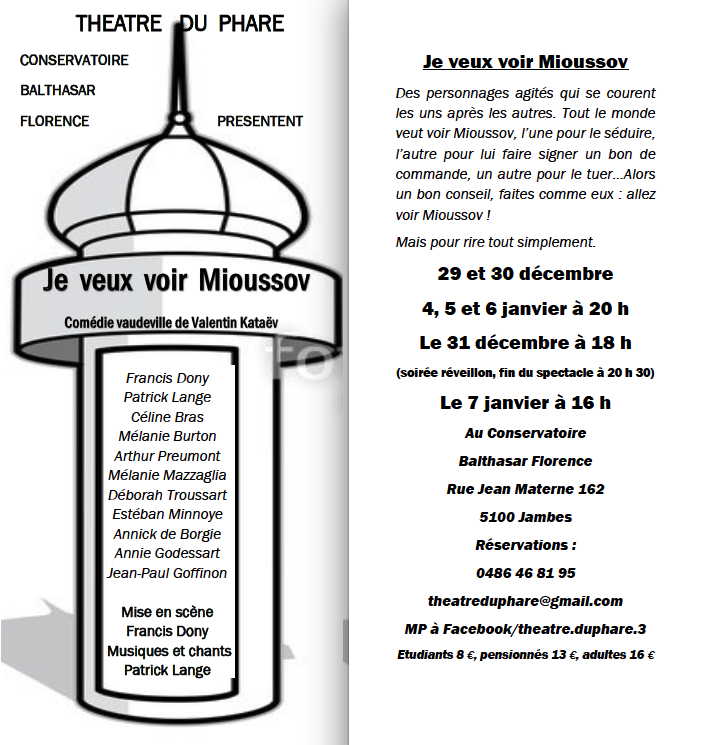 | | JURBISE | Salle Culturelle Jacques Galant Rue du Moustier, 8 | Christophe Leblond, responsable service culture - Tél.: 065/37.74.31 - ouvert du lu. au ve. de 8h à 12h et de 13h à 16h30 | 17/01/2018 | Mercredi | 20.00