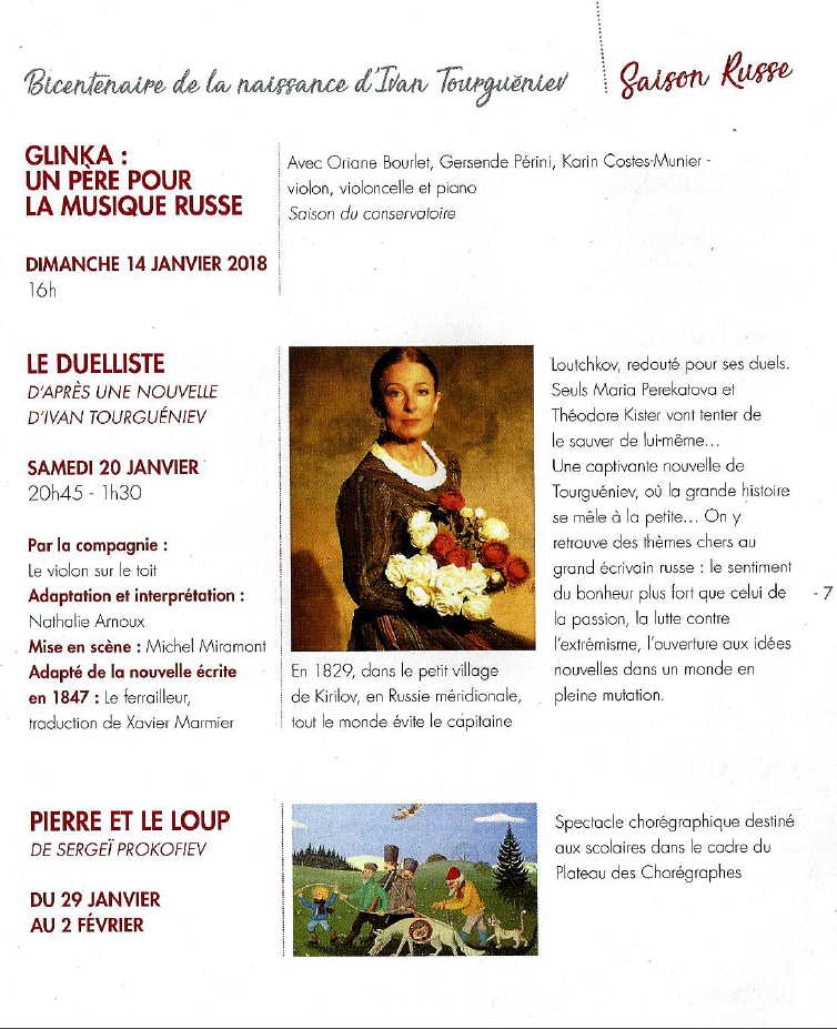 Janvier 2017 => Calendrier d'événements à caractère culturel russe.