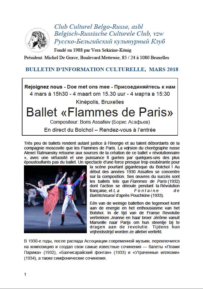 Сайт/Site : http://www.vava.be/Files/RC BIB Bulletin CCBR - Club Culturel Belgo-Russe. 2018 Mars 2018-03-01.pdf