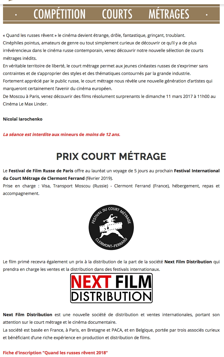 Avril 2018 => Calendrier d'événements à caractère culturel russe.