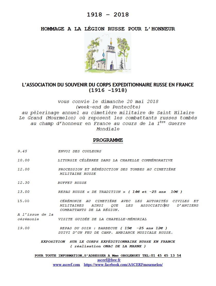 Juin 2018 => Calendrier d'événements à caractère culturel russe.