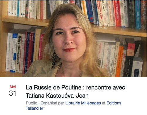 Organisé par Librairie Millepages et Editions Tallandier, Paris Tatiana Kastouéva -Jean est spécialiste des politiques intérieure et étrangère russes. Elle signe aux éditions Tallandier La Russie de Poutine en 100 questions.