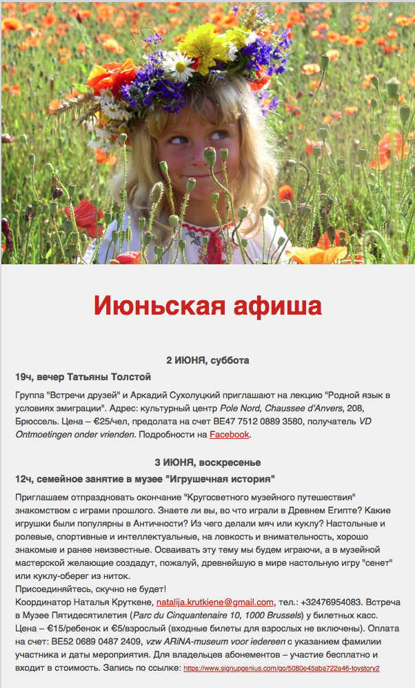 Приходите всей семьёй и зовите друзей! Продажа билетов начинается с 14 мая (только для Импульс) с 20 мая (для всех желающих) 0486 66 31 82 - Юлия / 0488 18 83 15 - Анастасия impuls.be at gmail.com