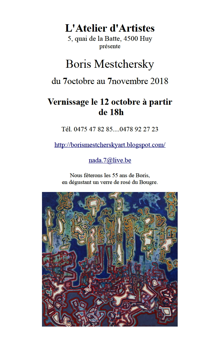 Exposition Boris Mestchersky A l'Atelier d'artistes à Huy. |