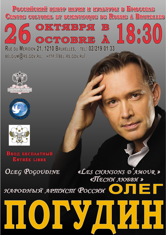 La Russie inconnue Concert de carillon interpreté par des musiciens belges Supernova, Antwerpen La nature protégée de Russie Heure de classe Oleg Pogounine Ouverture du ciné-club au CCSR à Bruxelles