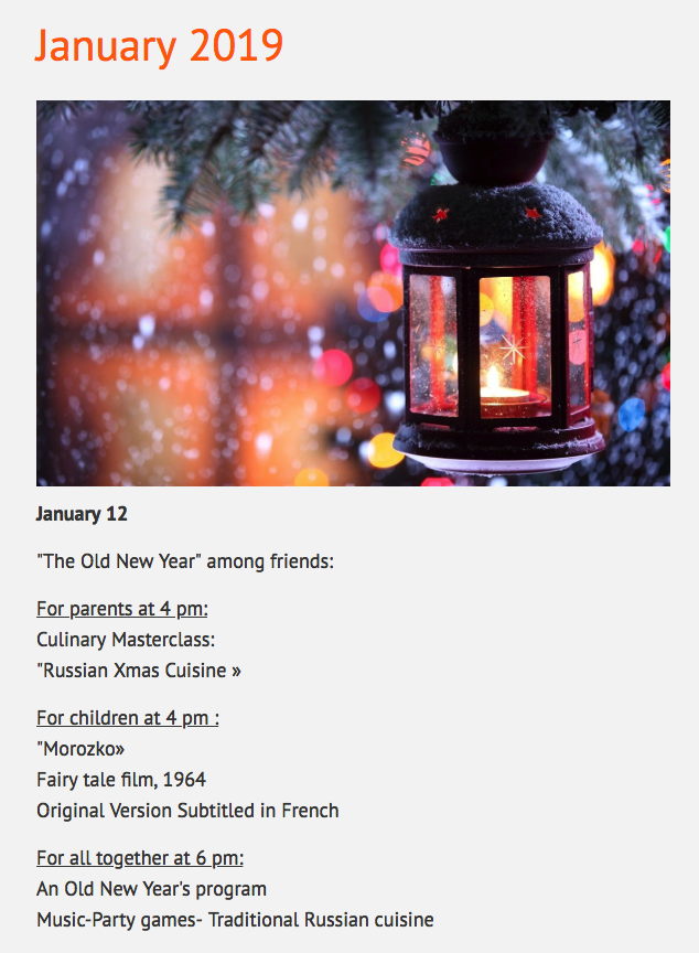 Janvier 2019 => Calendrier d'événements à caractère culturel russe.