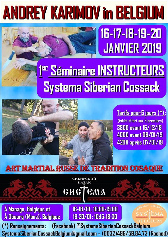| 17/1 => Expo photos Siège Léningrad (Saint-Josse) 17-19/1 => Fascinations russes (Lille) 17/1 => Concert Irina Lankova (Liège) 19-20 => Stage Art Martial Russe (Obourg) 20/1 => La Bayadère (Kinepolis) 21/1 => Vadim Repin et son bugle favori (Namur) 23/1 => Red Haired Men (Mechelen) 25/1 => Vyssotski. Merci d'être vivant... (Saint-Josse) 26/1 => Let's celebrate 2019 in style! (Zaventem) 26/1 => Сибирский Stand Up (Rotterdam) 27/1 => Nouvel An russe (Antony) 29/1 => Commune de Paris, Patriotisme ou Révolution (Bruxelles) 30/1 => Periode van spanningen en confrontaties? (Brasschaat) 30-31/1 => Drie Zusters. Zuidpool Theater (Brugge) Bibliographie : • Elderly Population in Modern Russia : Between work, education and health (Springer, Cham) • Moscow Rules : How Russia Sees the West and Why it Matters, by Keir Giles (Brooking, Washington) • Russia’s Addiction : How Oil, Gas, and the Soviet Legacy Have Shaped a Nation's Fate (Brooking, Washington)