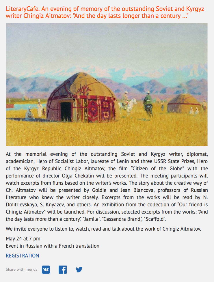 Mai 2019 => Calendrier d'événements à caractère culturel russe.